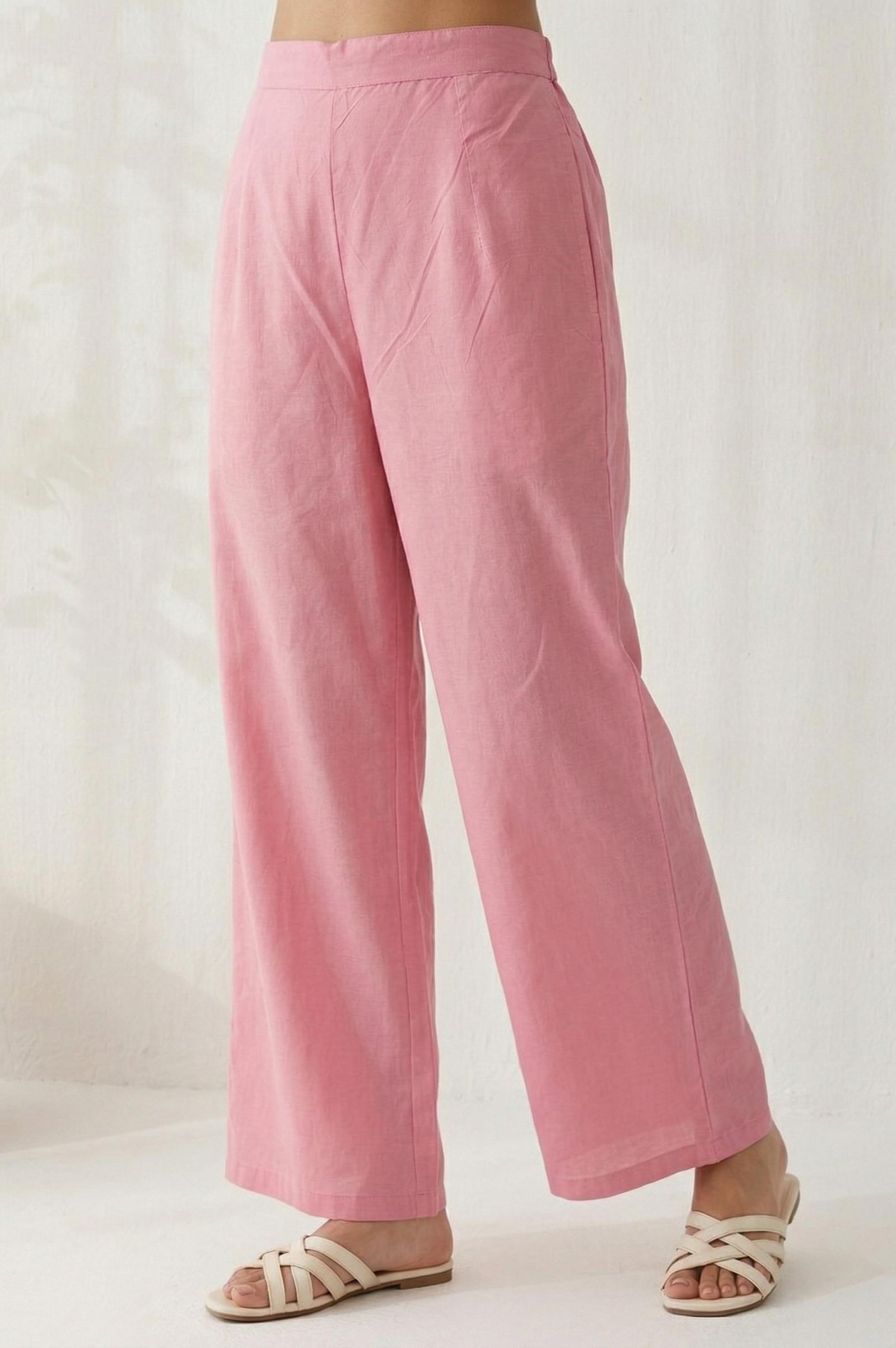 The bottom is made from pure cotton fabric, designed as full-length pants that ensure comfort and ease of movement. The minimal design complements the embroidered top, creating a balanced and versatile ethnic co-ord look suitable for casual and semi-formal occasions.