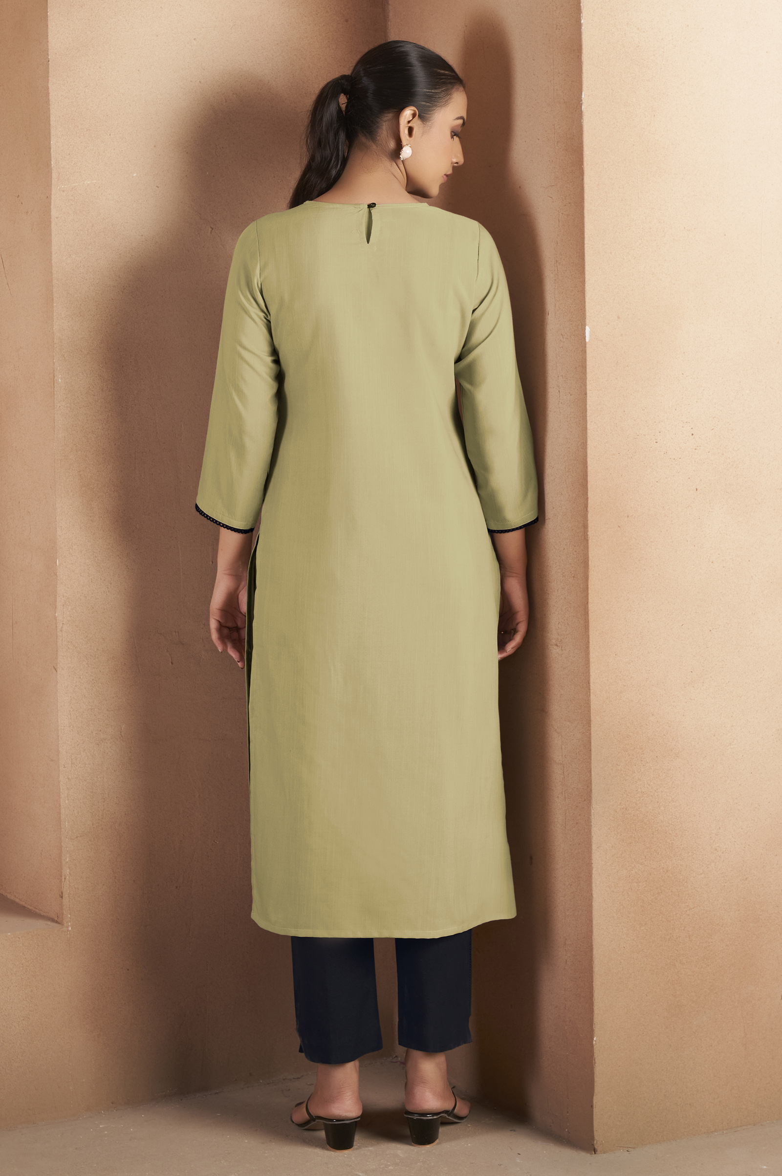 There may be minor variation in the color and work as seen on the website against the actual product received due to the limitations of imaging technologies and differences