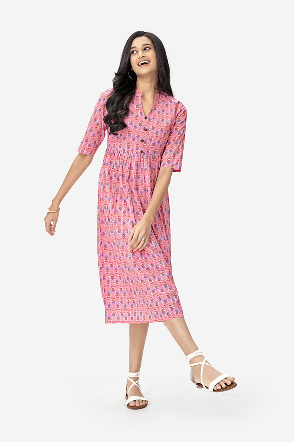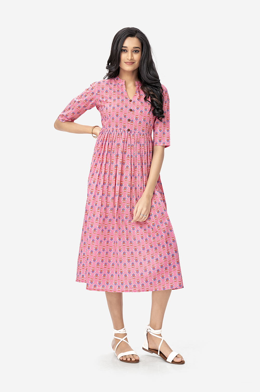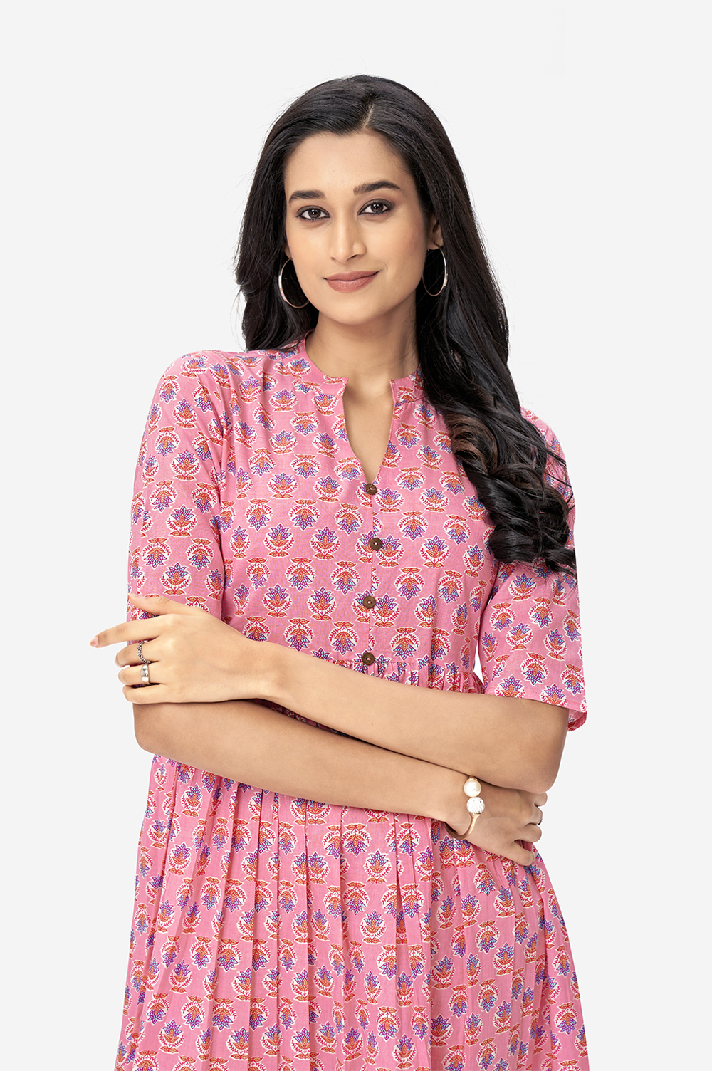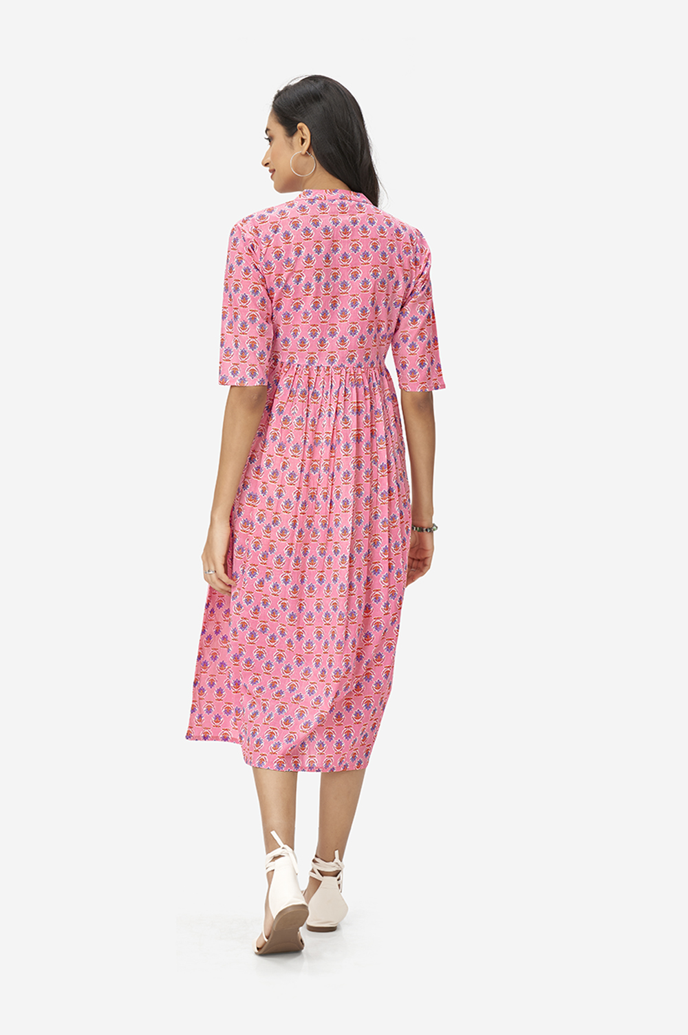 Baby Pink Lotus Floral Maxi Tunic