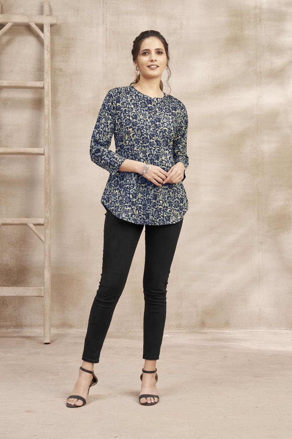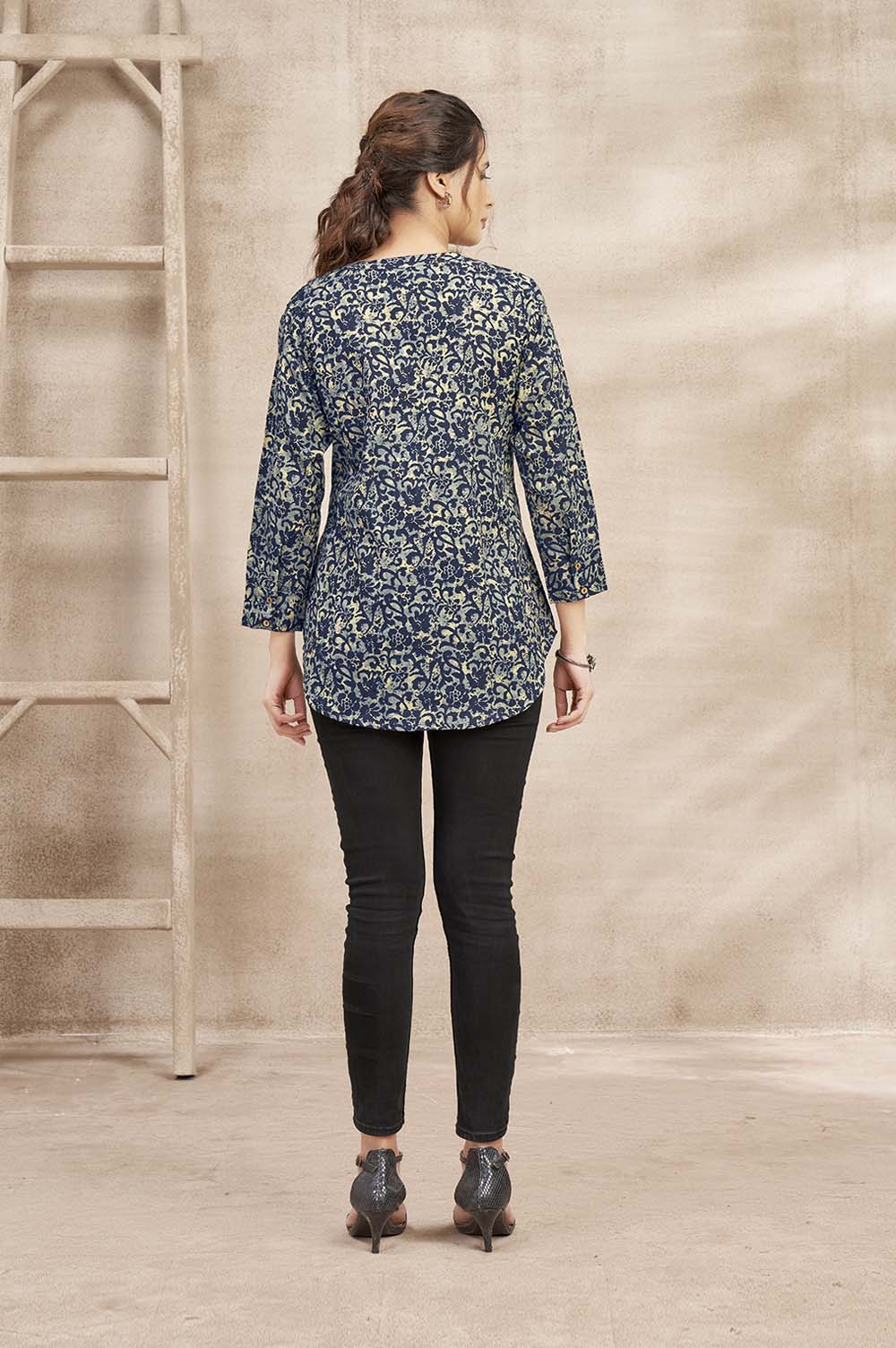 Elevate your wardrobe with this stunning short top, crafted from pure cotton and featuring a beautiful black floral print that's perfect for any season.