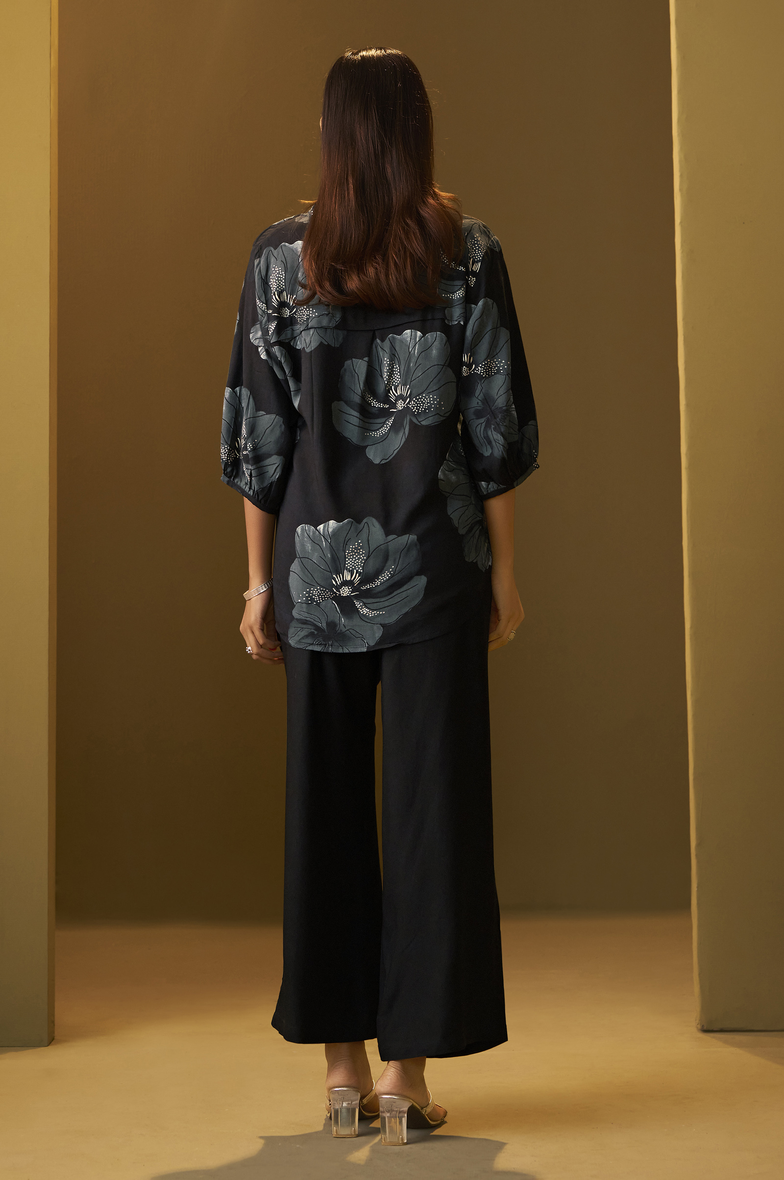 Black Viscose Reyon Printed Top and Pant Co-ord Set