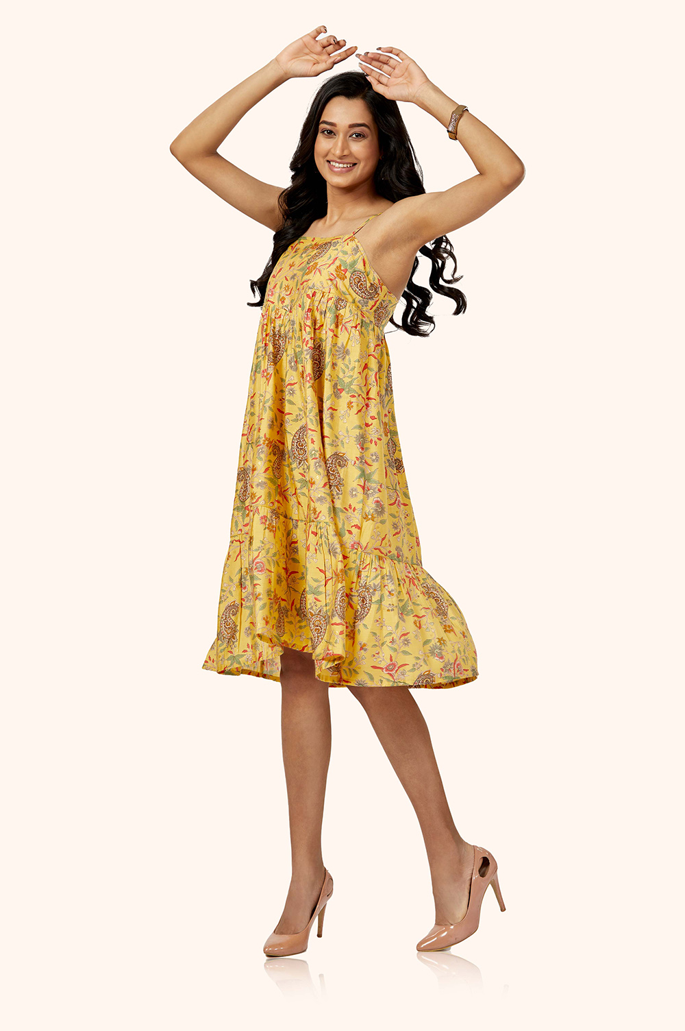 Make a statement in our gorgeous fit & flare midi dress, crafted from luxurious Chanderi fabric with a stunning foil print.