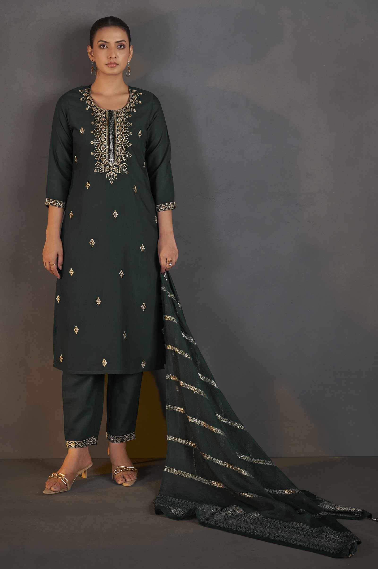 Embroidered and Embellished with Sequined Work