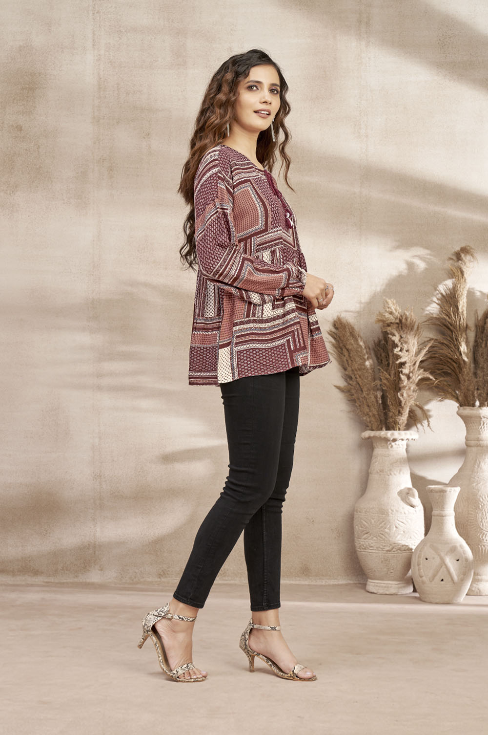 With its stunning design and natural allure, the Earthy Hued Rayon Top is a must-have for any fashionista seeking a refined and fashionable wardrobe staple. Let this top transport you to a world of natural beauty and effortless style.