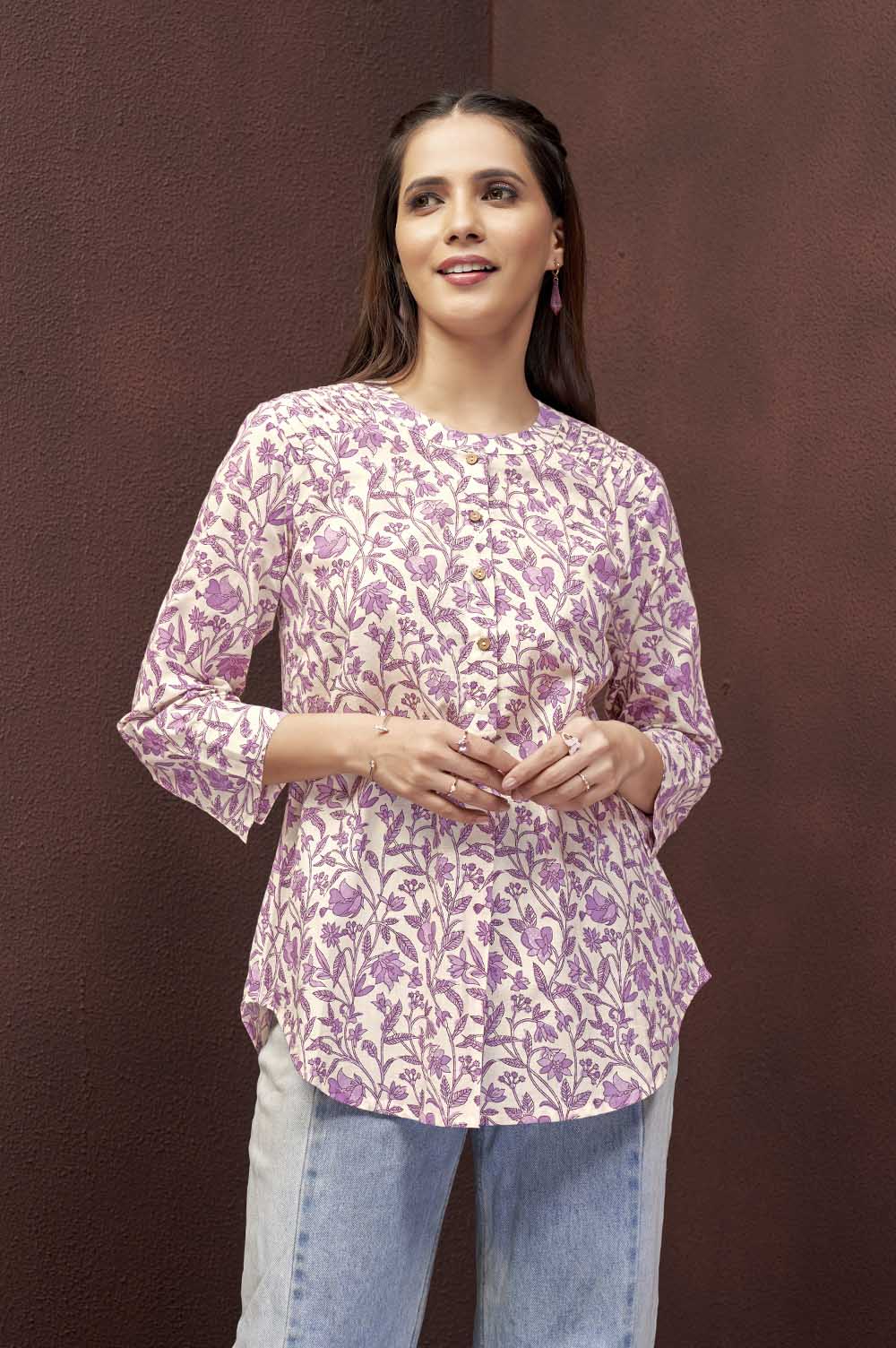 The pleats on the shoulder and 3/4th sleeve length add a unique touch of detail, while providing a comfortable and flattering fit.