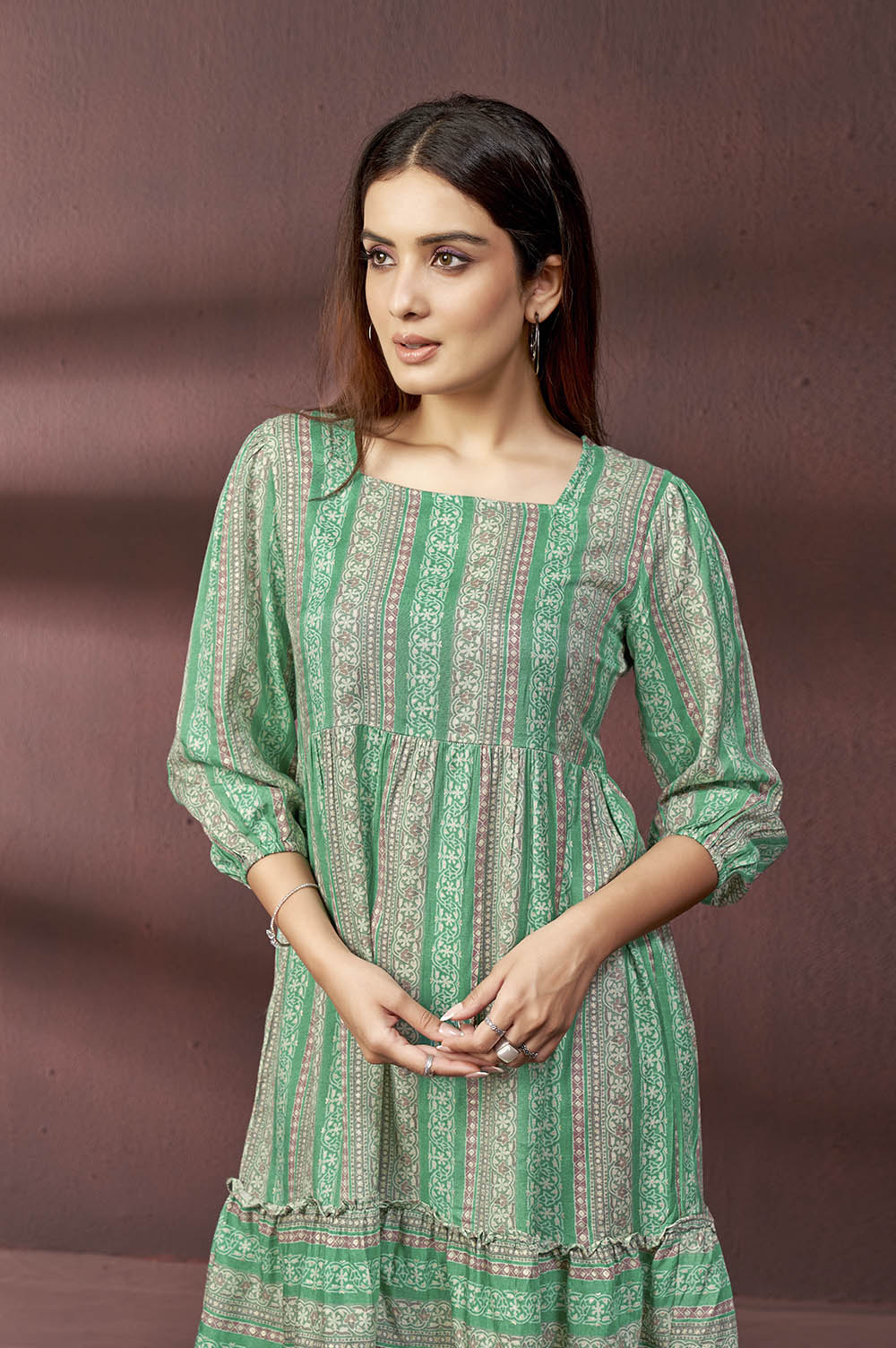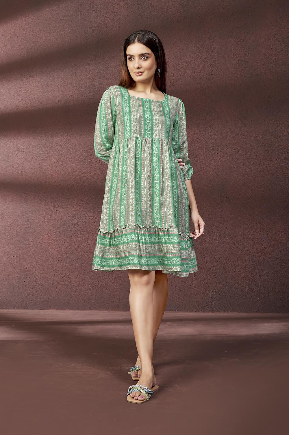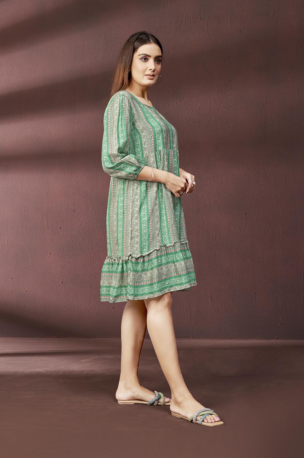 Our stunning knee-length midi dress is made from premium quality rayon fabric, adorned with a beautiful digital print that is sure to make a statement wherever you go.