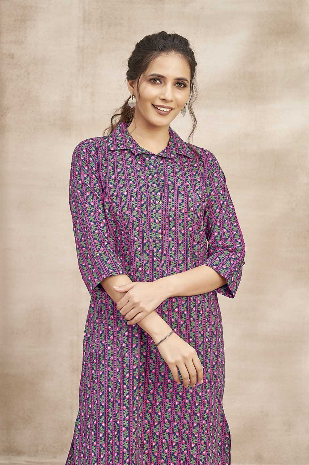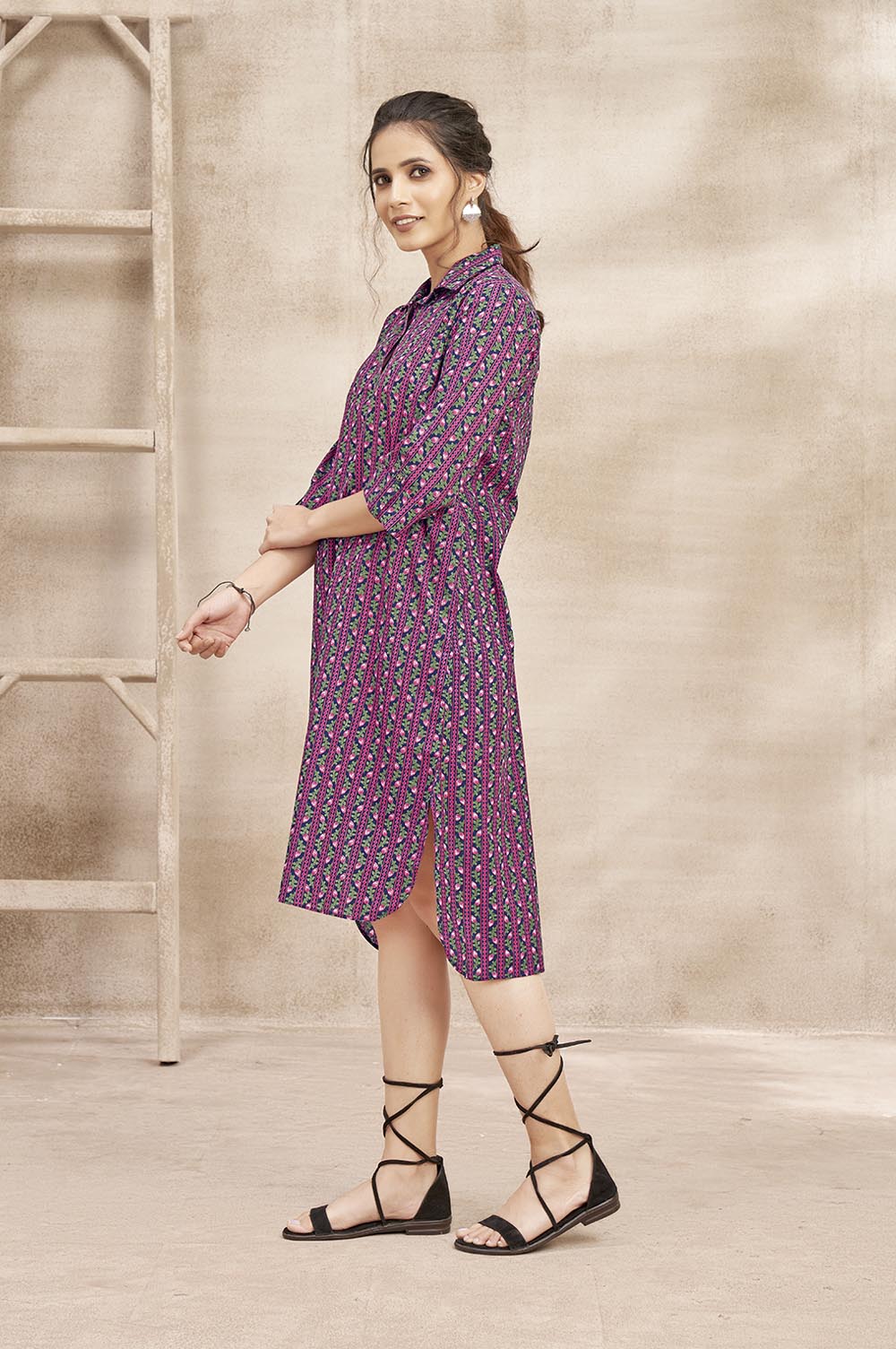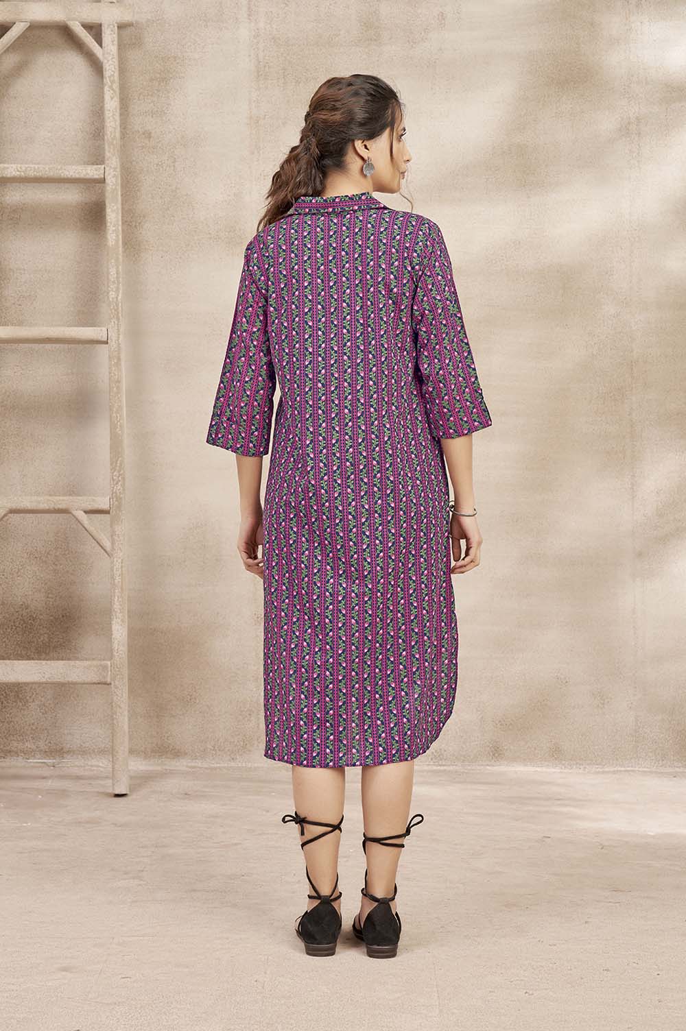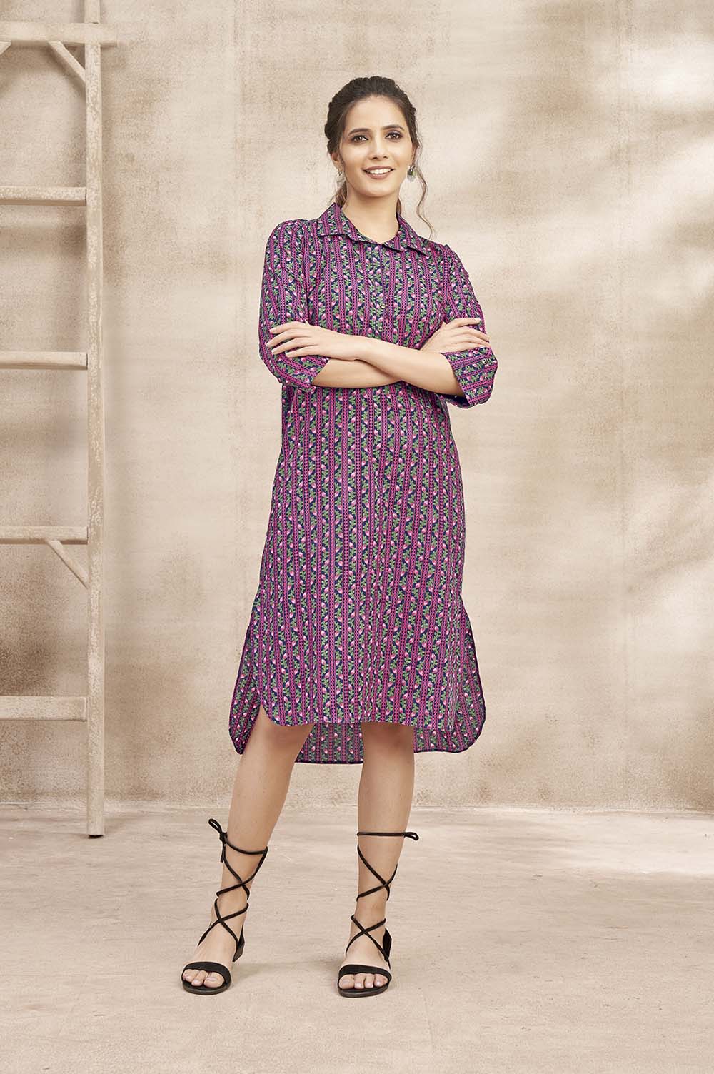 Elevate your style with the Cotton Collar Kurta-Style Printed Maxi Dress - the perfect fusion of traditional and contemporary fashion. Made with premium quality cotton, this dress is both comfortable and durable, ensuring you look and feel your best all day long
