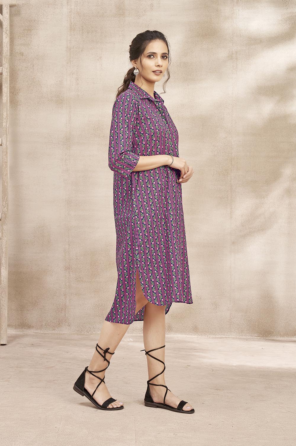 The kurta-style collar and stunning print add a touch of sophistication and elegance to this classic silhouette, making it perfect for any occasion - from a formal event to a casual day out.