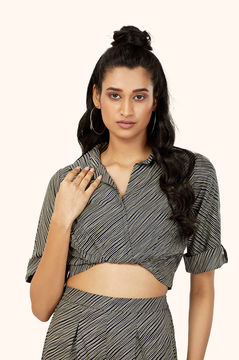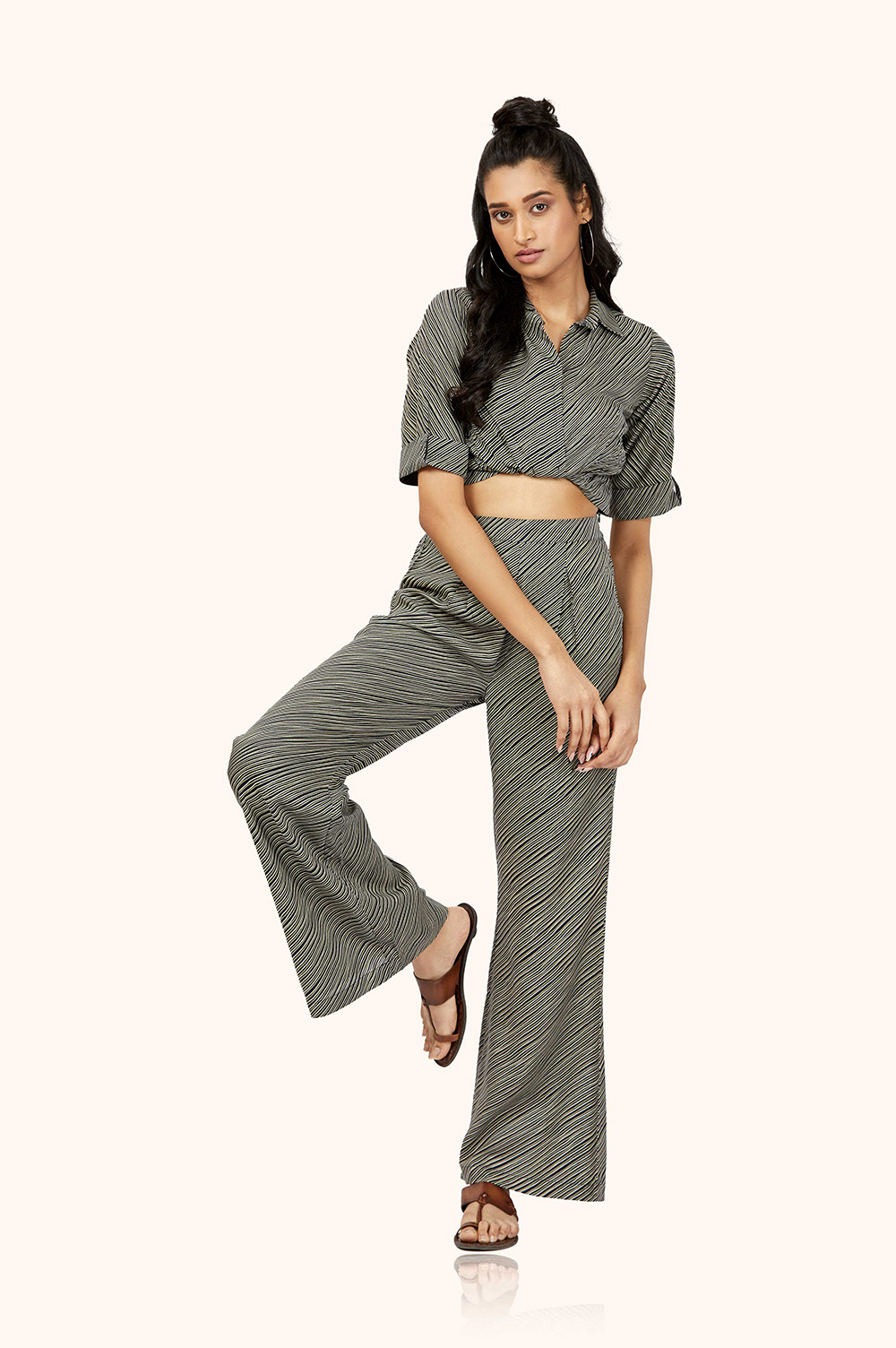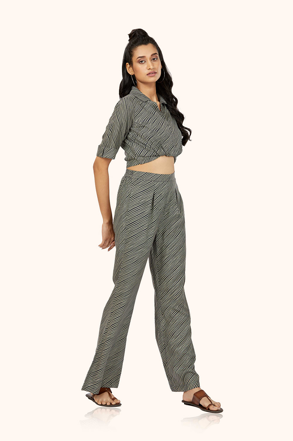 The stripes print creates a statement look that is both stylish and modern.