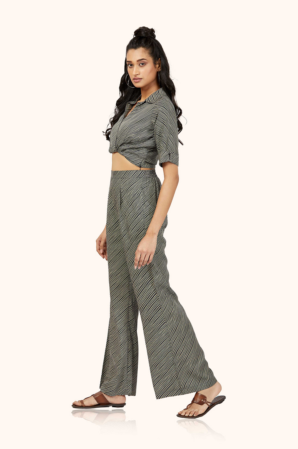 Update your wardrobe with our stylish co-ord set, featuring a shirt and pant silhouette crafted from luxurious rayon fabric with a stunning stripes print.
