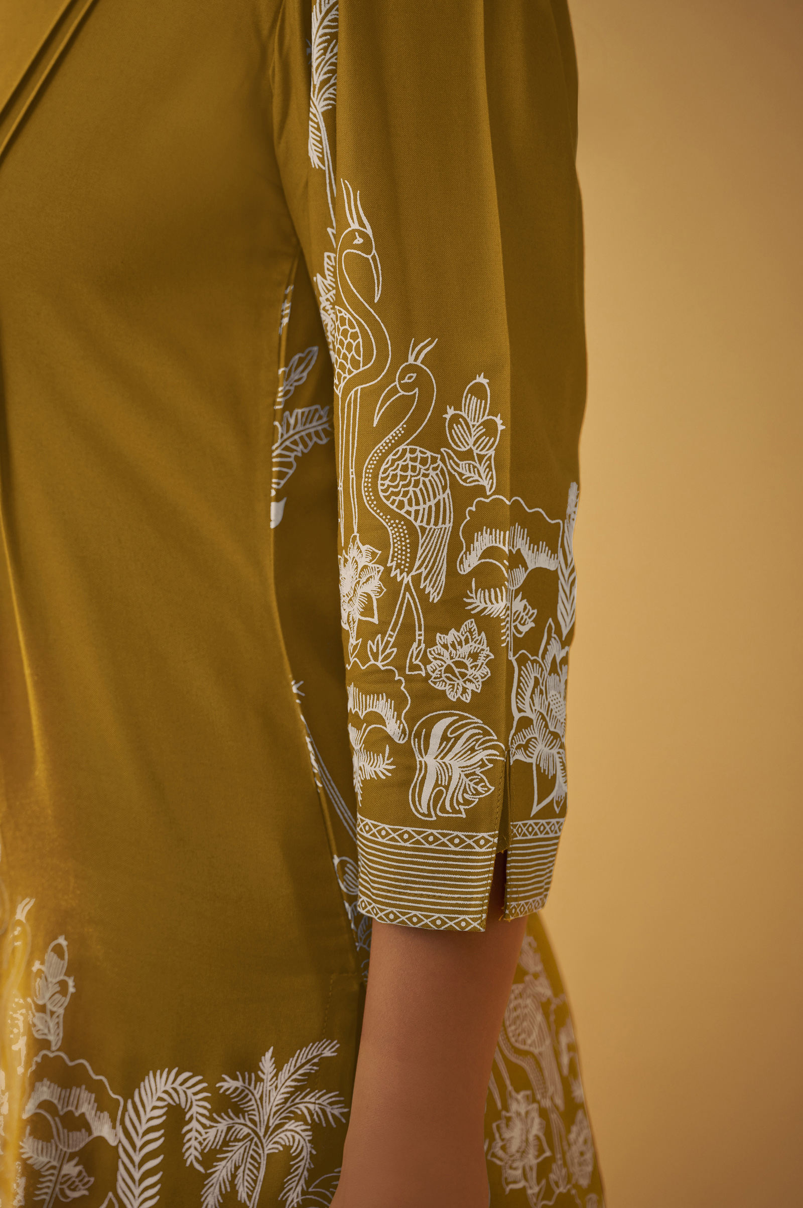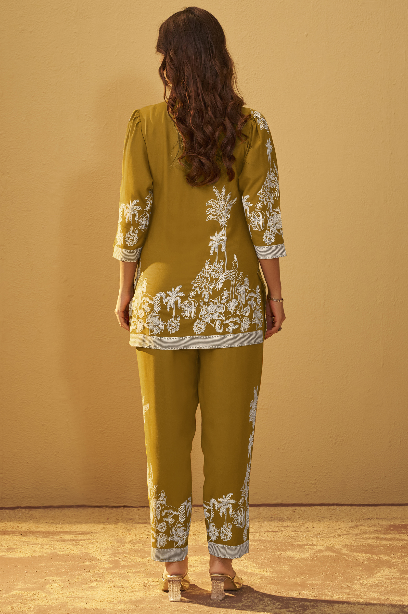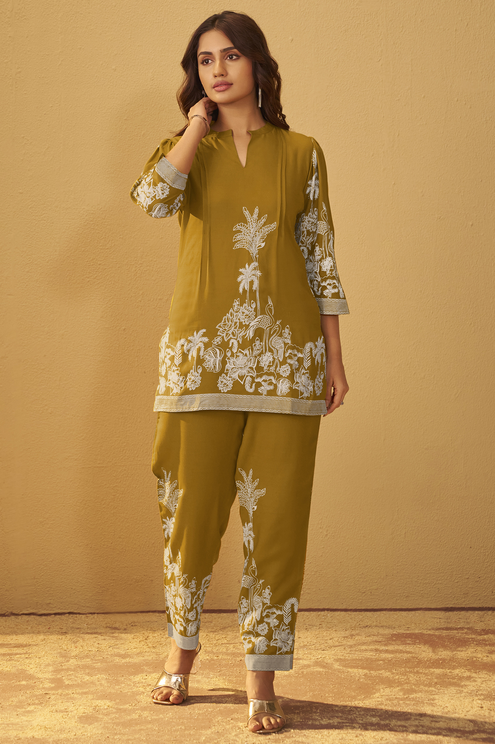 The bottom is made from rayon fabric, offering a soft and breathable feel, perfect for all-day comfort. Featuring a delicate floral print on an elegant Mustard base, it blends effortless style with ease, making it a versatile choice for both casual and semi-formal occasions.