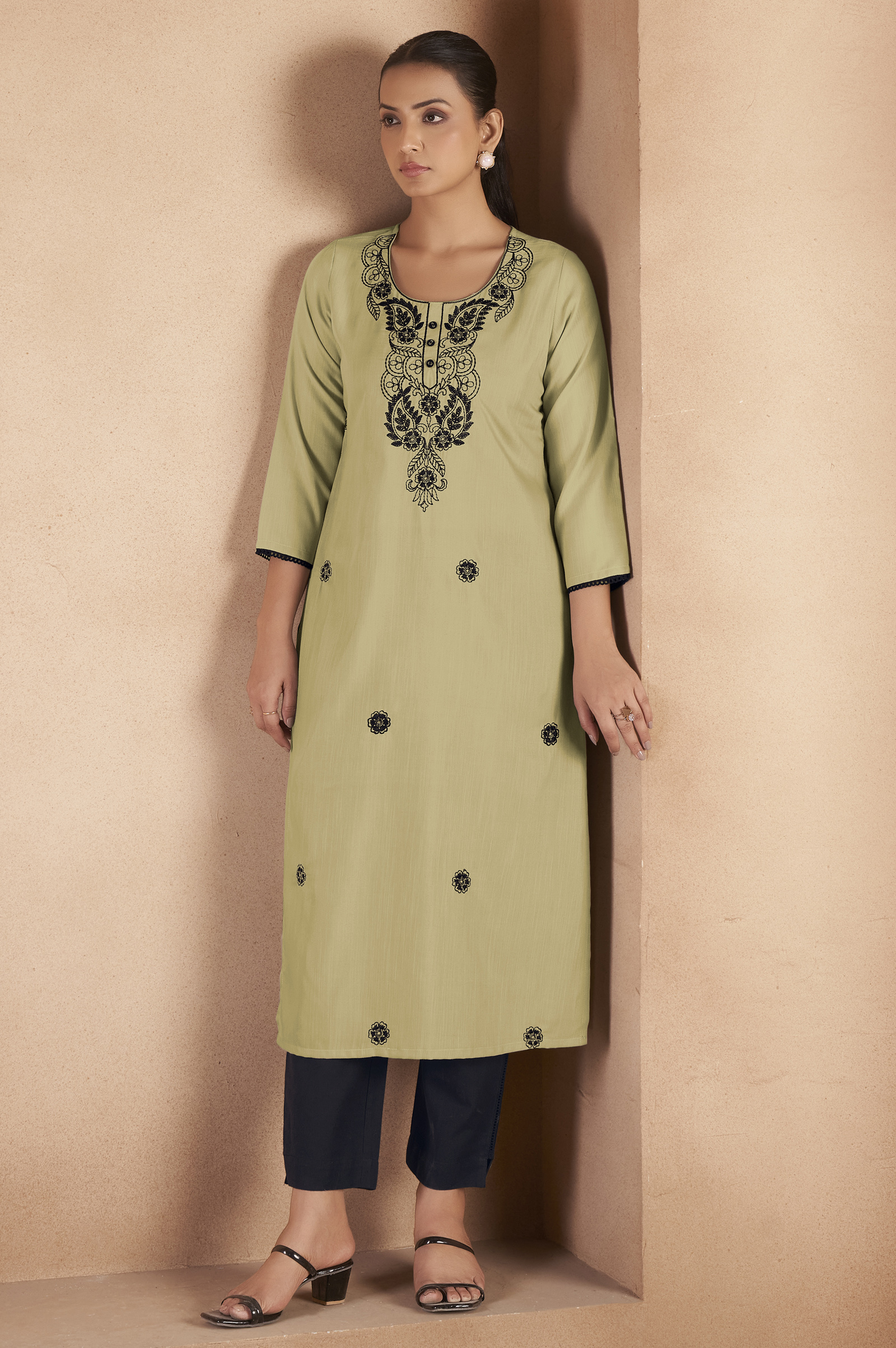 There may be minor variation in the color and work as seen on the website against the actual product received due to the limitations of imaging technologies and differences