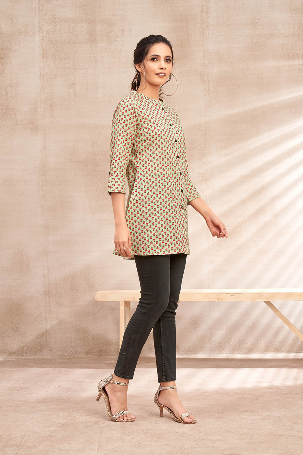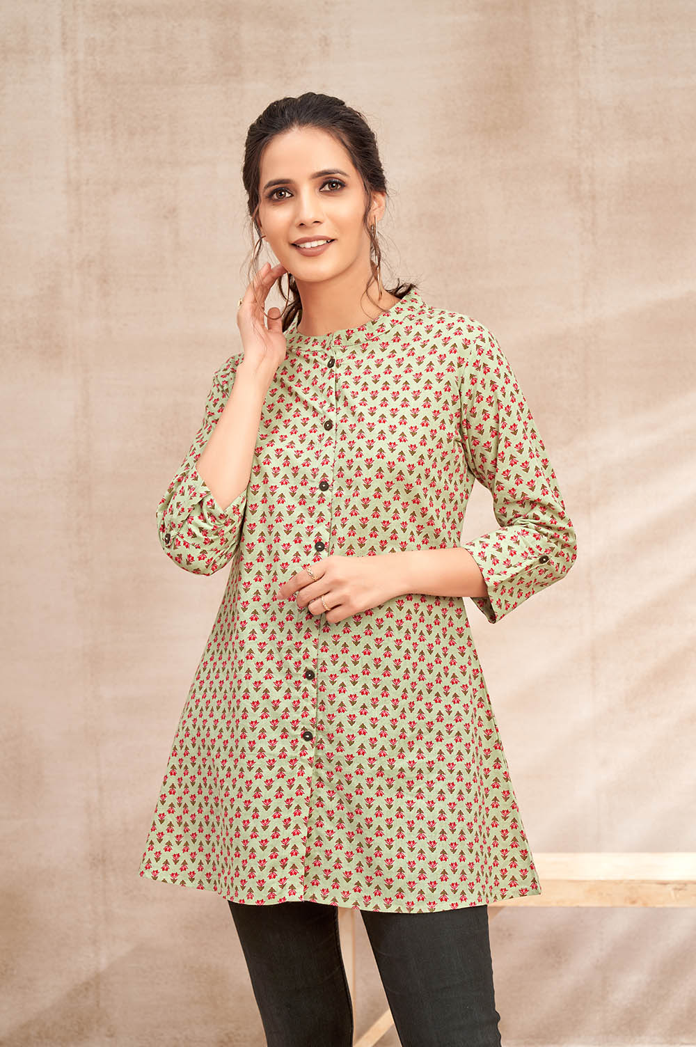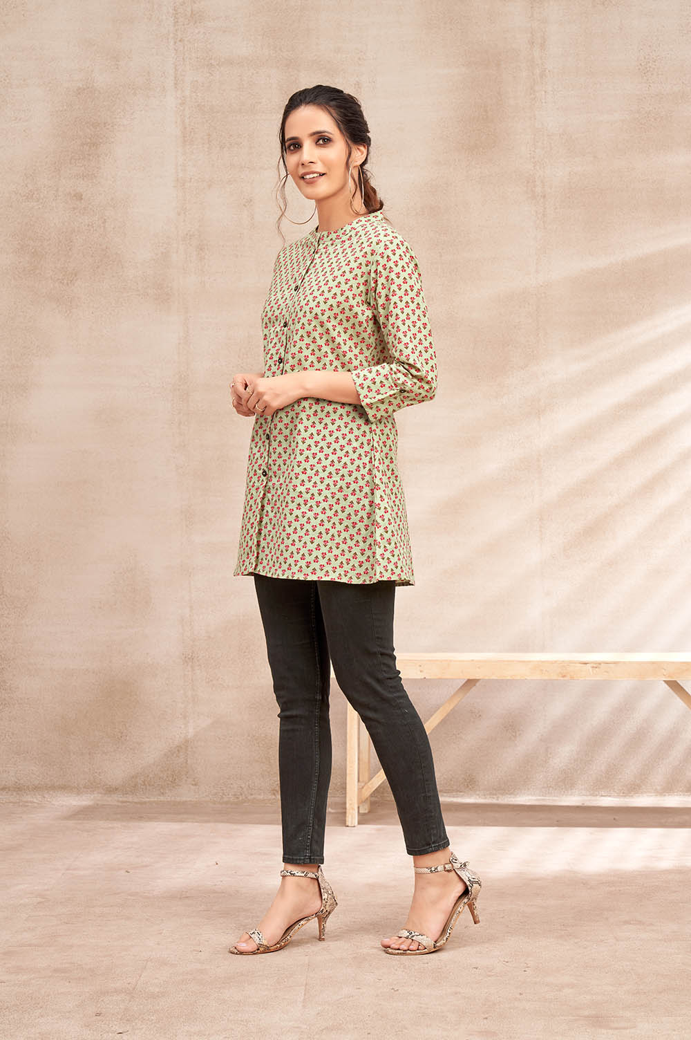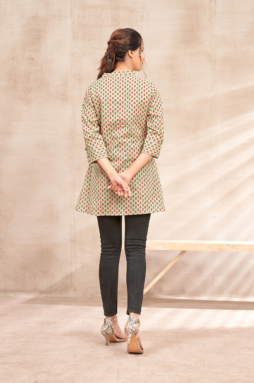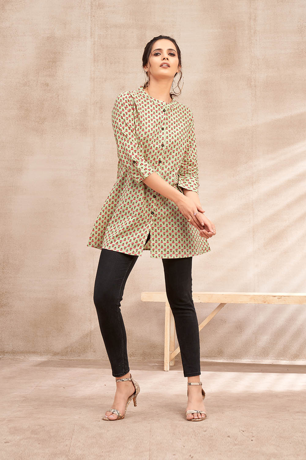 For those who appreciate artisanal craftsmanship and refined style, the Pista Green Table Print in Jaipur Cotton Kurti is an absolute must-have in your wardrobe.