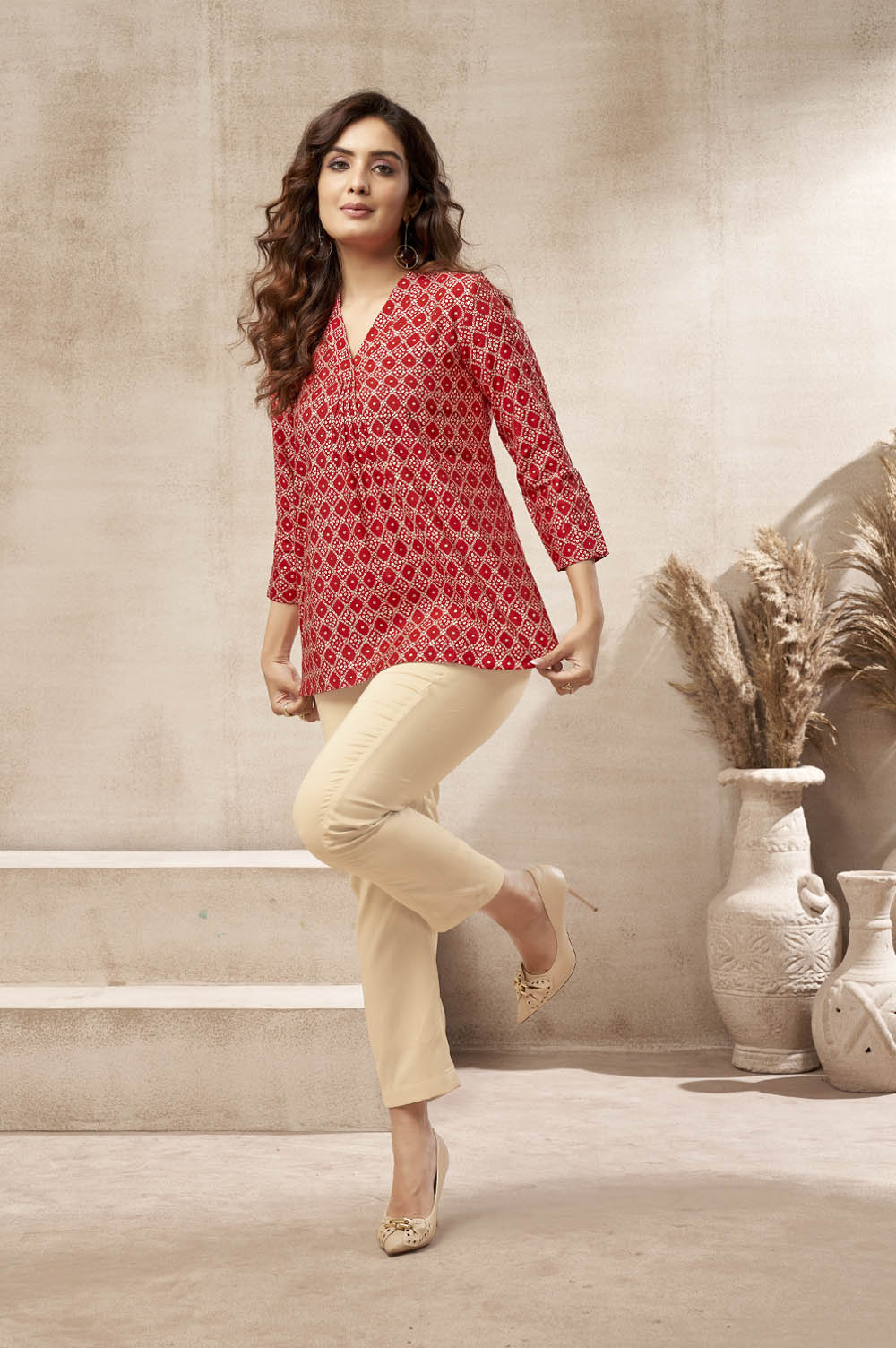 • The red kurti is a bold and fiery choice that exudes confidence and strength. The rich shade of red is captivating and alluring, making it perfect for special occasions or everyday wear.
